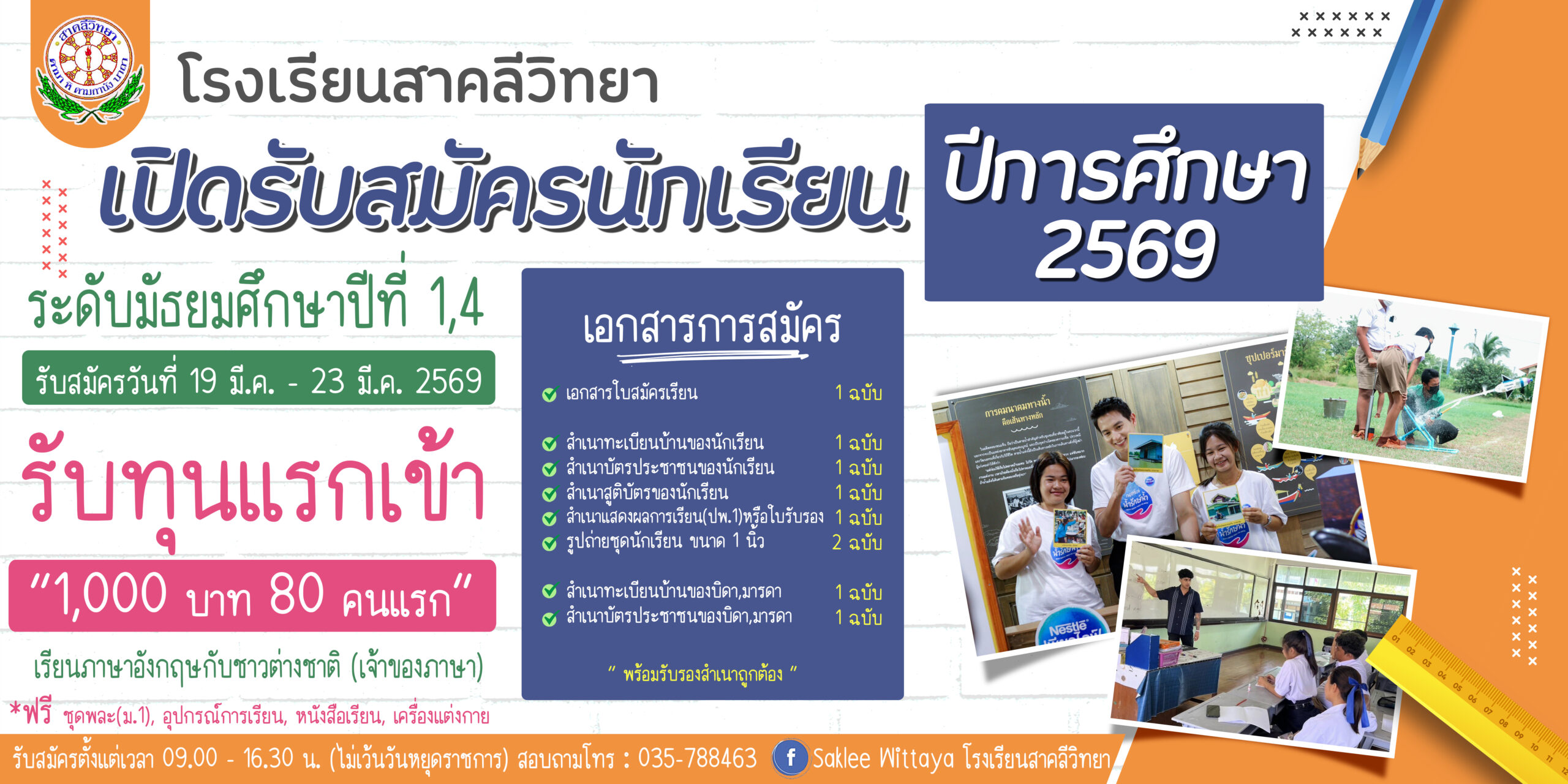 ข่าวสาร/ประชาสัมพันธ์ โรงเรียนสาคลีวิทยา เปิดรับสมัครนักเรียน ปีการศึกษา 2569 เปิดรับสมัครนักเรียน […] รายงานการประเมินตนเองของสถานศึกษา (Self – Assessment Report : SAR) โรงเรียนสาคลีวิทยา ปีการศึกษา 2567 Innovation for Thai Education (IFTE) สถานศึกษาคุณภาพพิเศษแห่ง สพฐ. (OBEC Special)